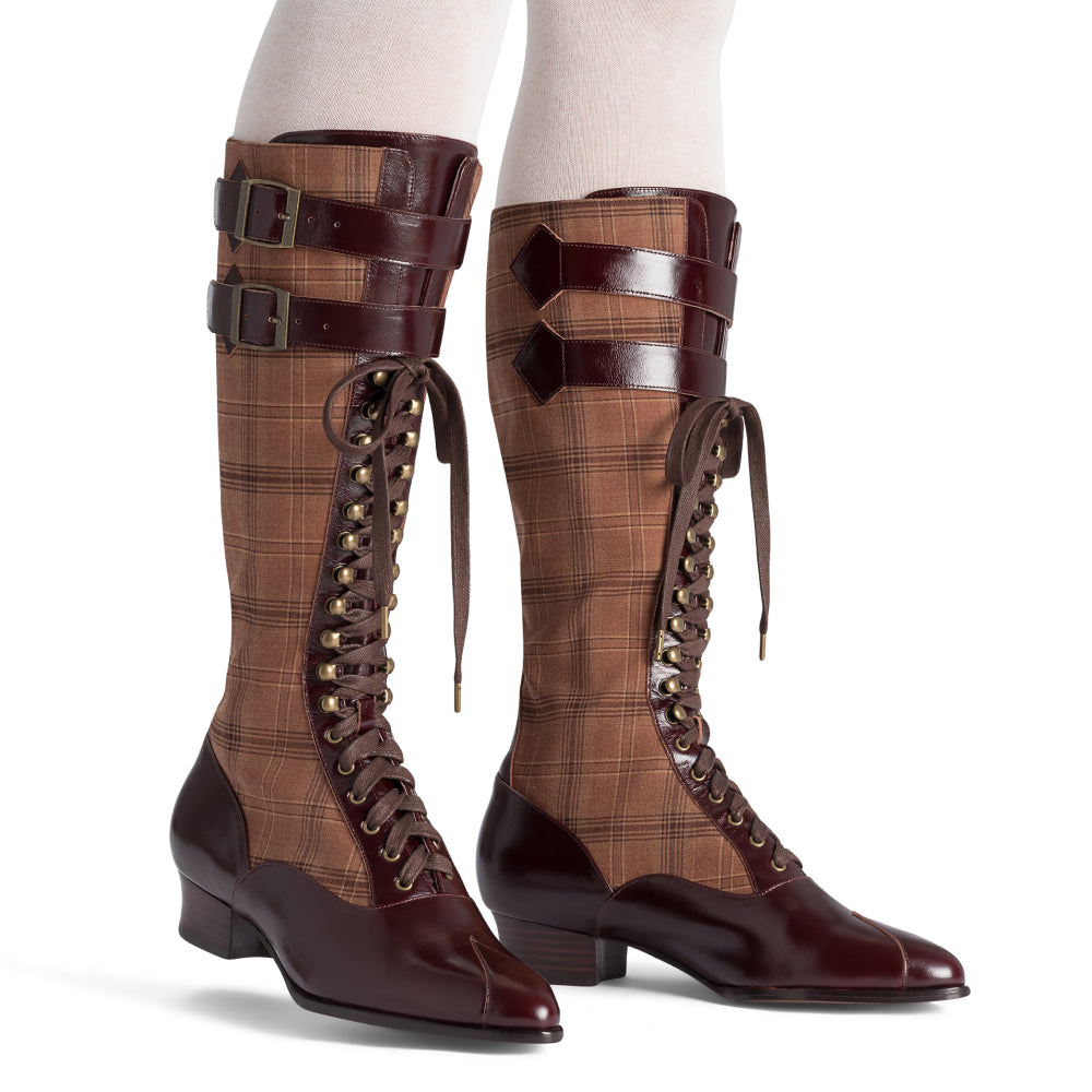 Cambridge Edwardian Bicycle Boots Wide (Brown/Plaid)