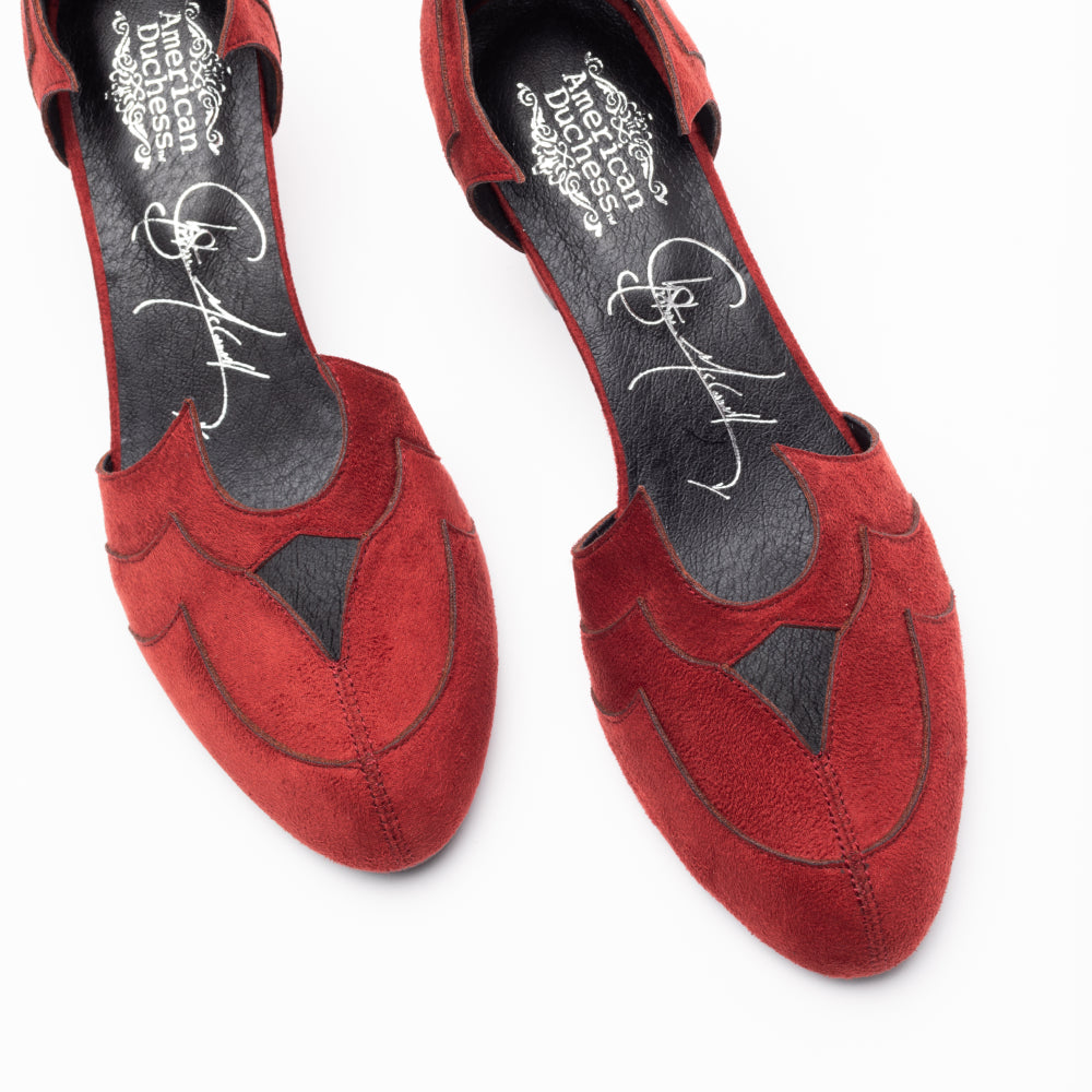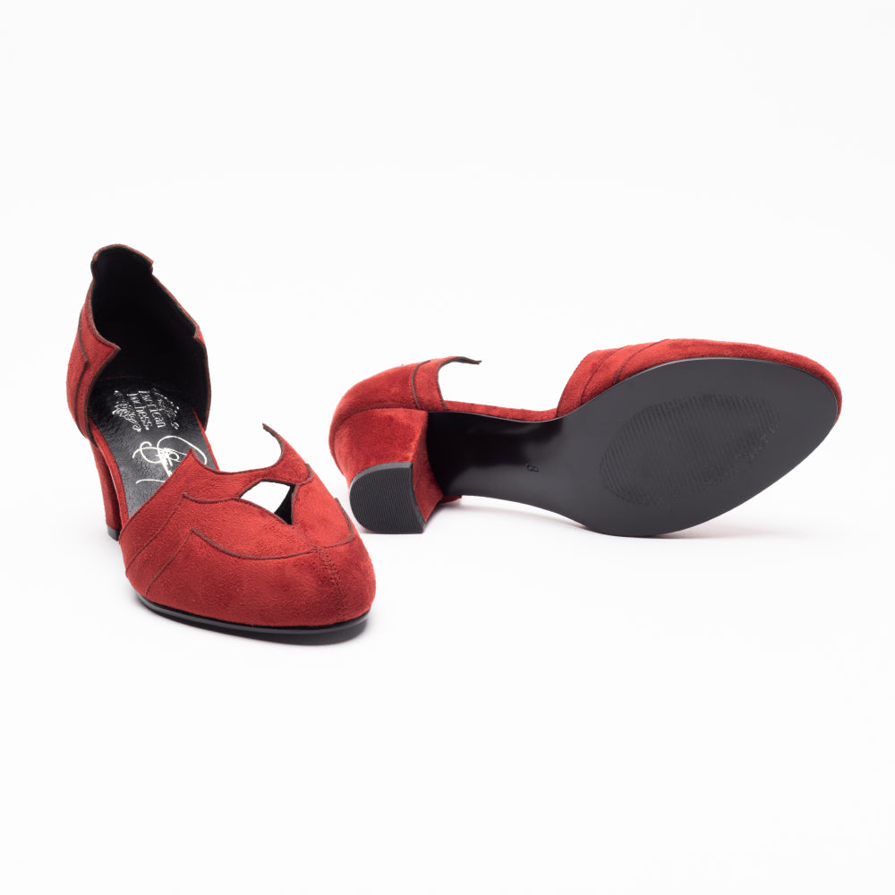 From the mind of Christine McConnell, introducing the Christine Pumps. Inspired by the open-sided pumps that were popular in the 1930s and 1940s, these sleek, sexy pumps from our collaboration collection with Christine McConnell are a veritable vision. Faux suede uppers in angular dimensions are set off by an alluring keyhole on the toe. Built on our perfectly balanced 2.5"/6.35 cm Cuban heel, leather-free Christine Pumps are a surefire way to add intrigue to your ensemble.