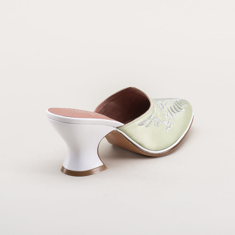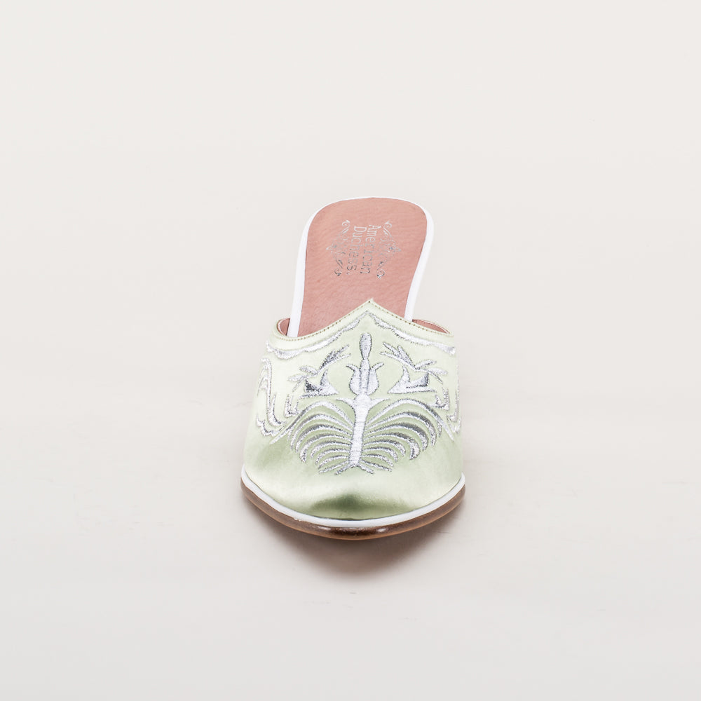 The Antoinette mules are made of durable materials specifically to withstand both indoor and outdoor wear, so don't be afraid of ruining your shoes between carriage and palace. These beautiful slippers are easily slipped on or off when fully dressed - no bending down to fasten buckles or ties - and the real leather lining keeps them securely on your feet.