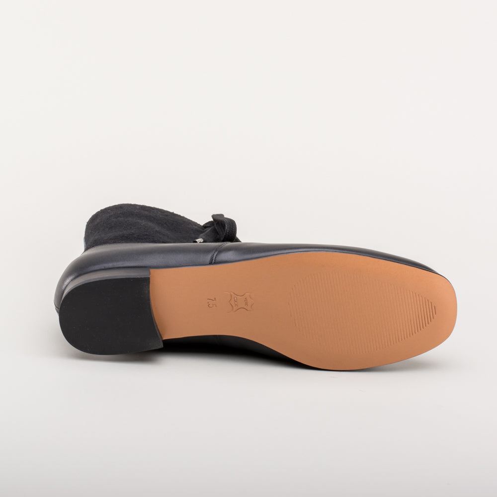 These adorable and versatile booties have a 0.75 in / 2 cm common sense heel with a safety rubber heel lift. The toes are lightly structure, softly squared. The boots are lined in wool felt to match the upper, with leather facings for durability, and a leather insole. The Larkspurs are wonderfully comfortable, warm, and extremely practical.