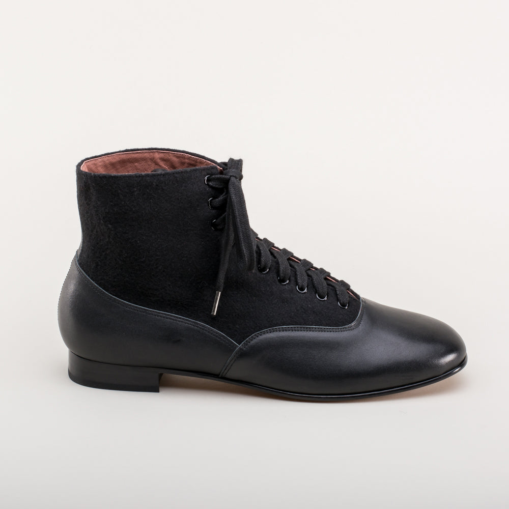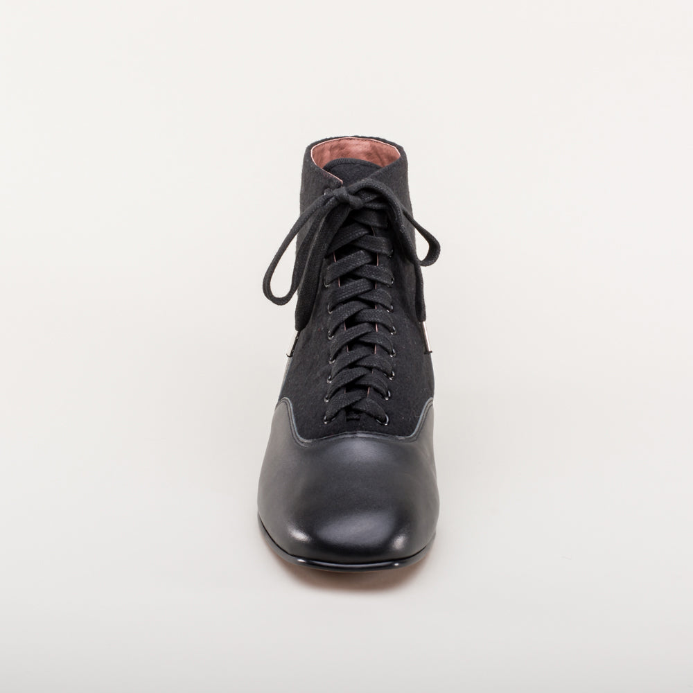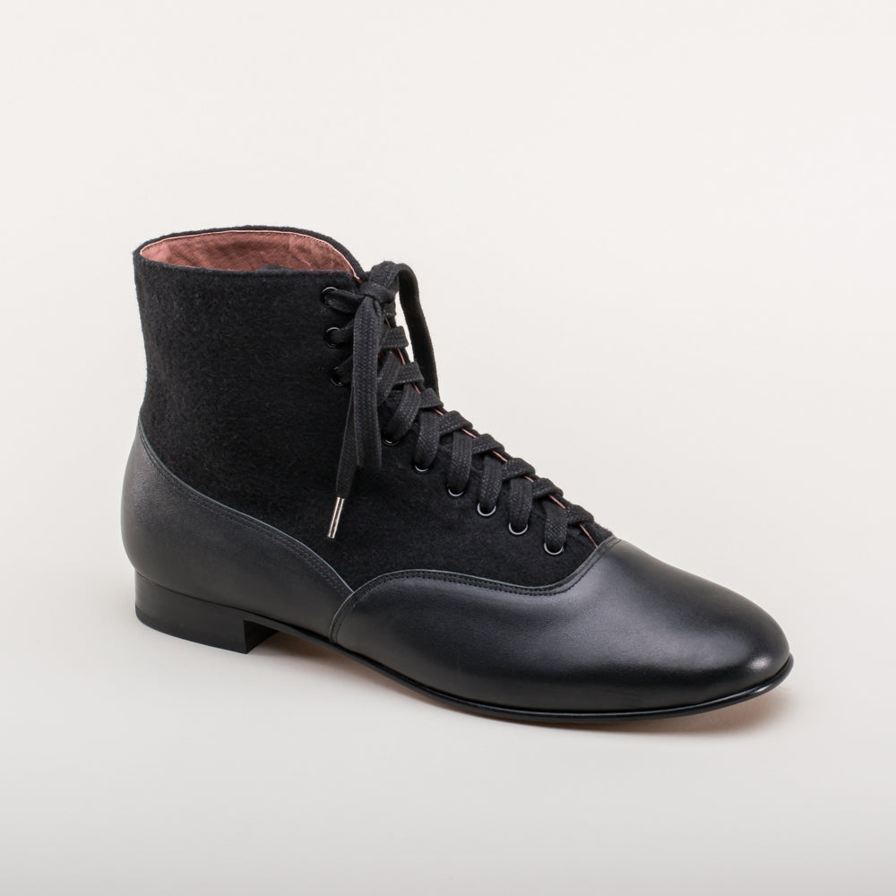 If you could only choose one boot for the broadest period of historic dress, the Larkspurs should be it! This faithful reproduction wool and leather bootie is accurate for a staggering 130+ years, from c. 1810 all the way through the 1930s.