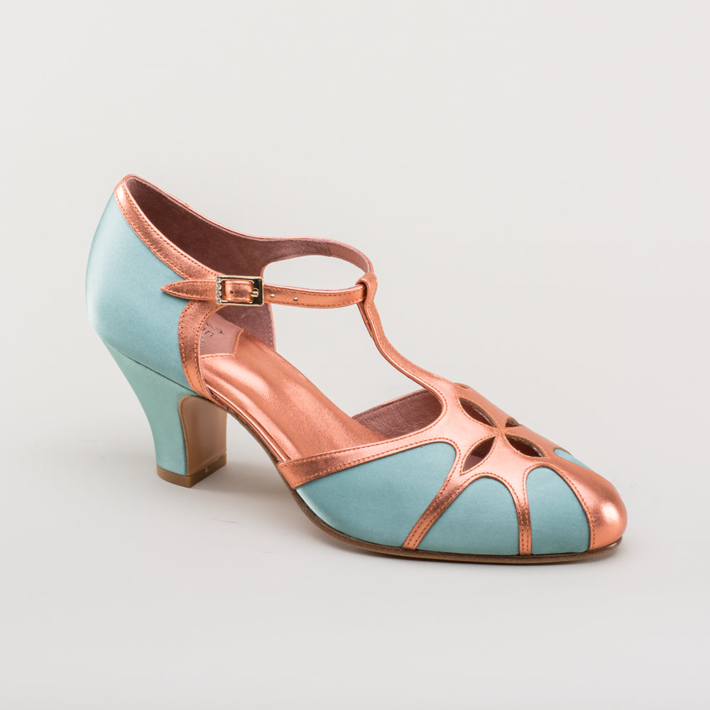 Lilith Vintage Flapper T-Straps Wide (Teal/Copper)