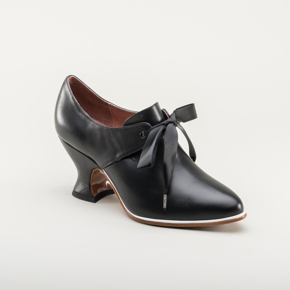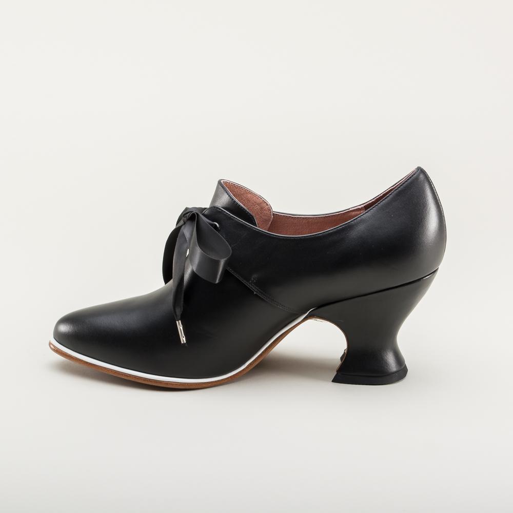 Named for the famous Madame de Pompadour, these heels are closely based on extant early 18th century shoes found in museums, and feature an easy tabbed closure that can be laced with your favorite colored ribbon, cockade, or pom-pom decoration.