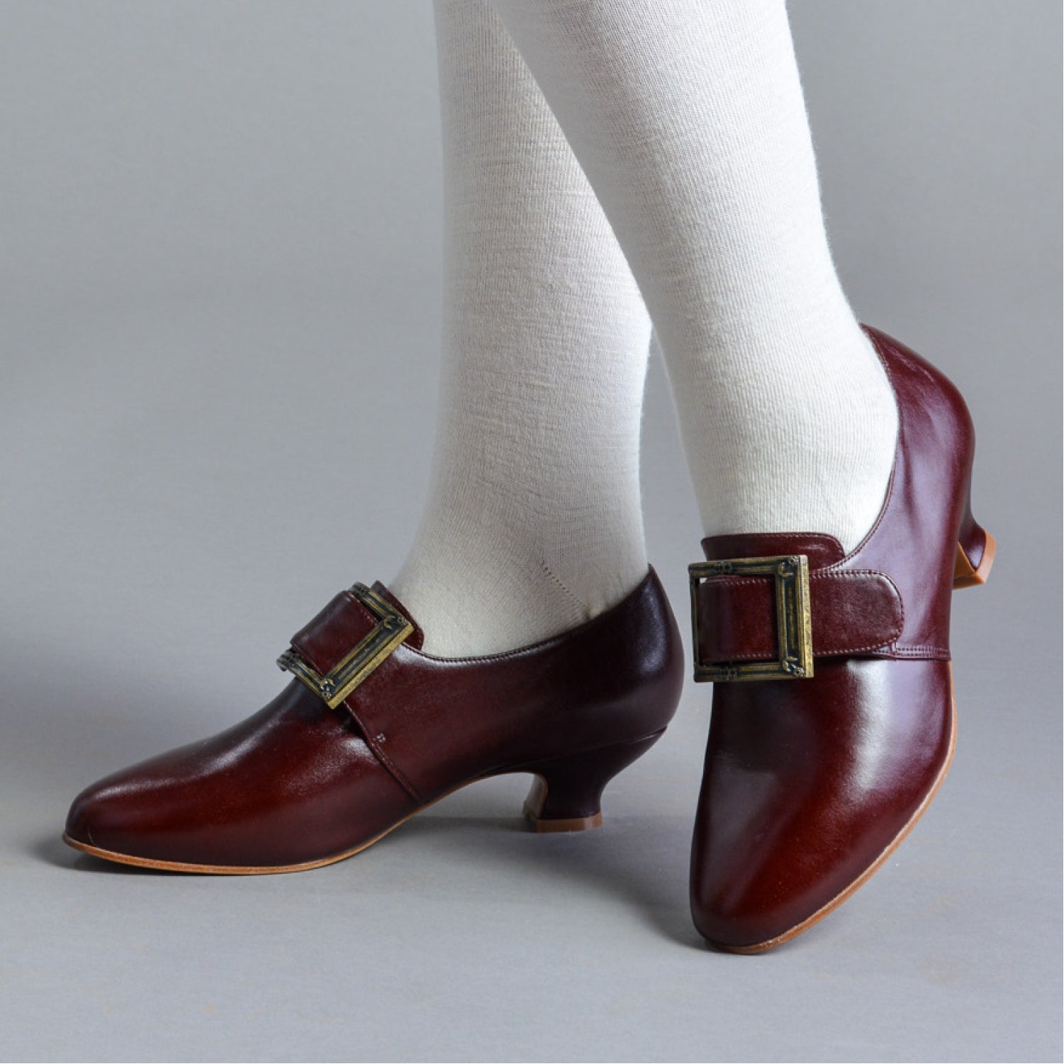Featuring our custom made French heels, and hand-sewn pointed toes, Kensingtons exhibit all the trademarks of shoes historically accurate for the American Colonial period, particularly the Revolutionary War years.