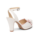 The glamorous platforms of the 1940s come to life with Ava, a veritable vintage knockout. Built on a new period-accurate reproduction last, Ava has a 0.6"/1.5 cm platform under the toe, providing lift and balance to match our custom, perfectly balanced, 4"/10 cm Spanish heels. Ava's uppers are crowned with a detailed, folded leather decorative bow, with smooth leather piping in coordinating colors. Ava's ankle straps are secured with a smart rectangular buckle, just like the originals from the 1940s. Ava pairs with your contemporary wardrobe just as well as your favorite pin-up inspired ensembles.