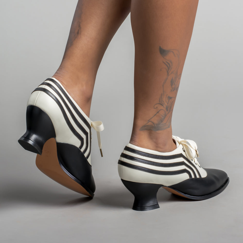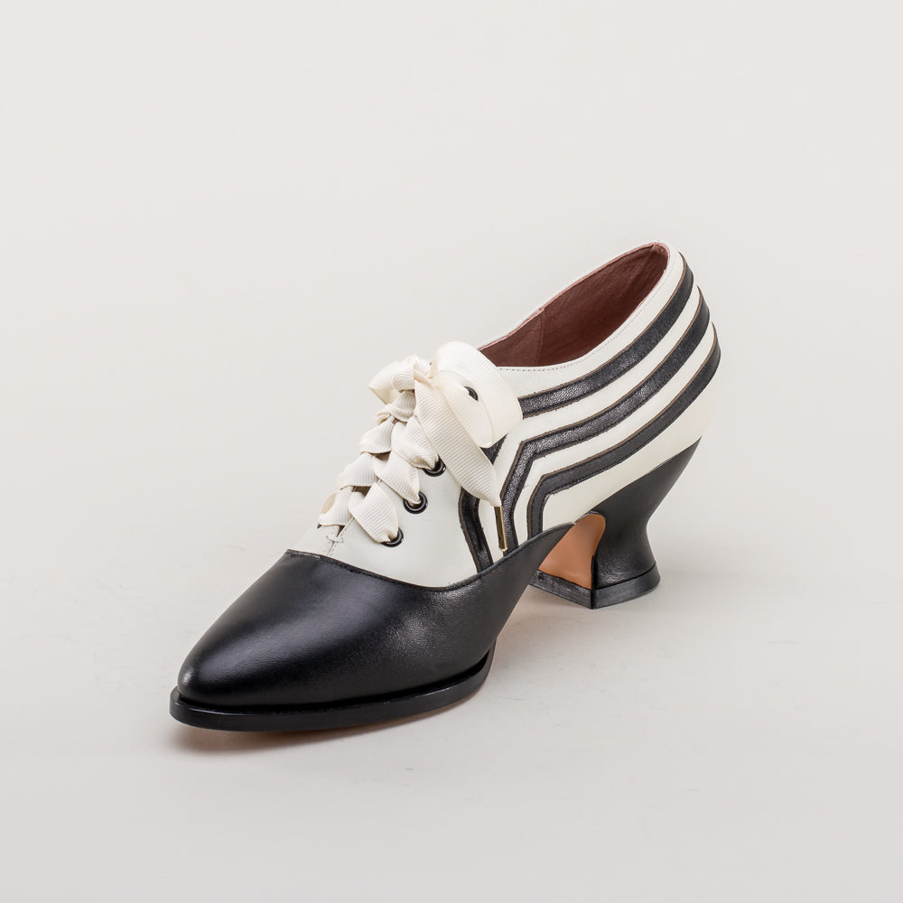 Bernadette Edwardian Oxfords Wide (Ivory/Black)