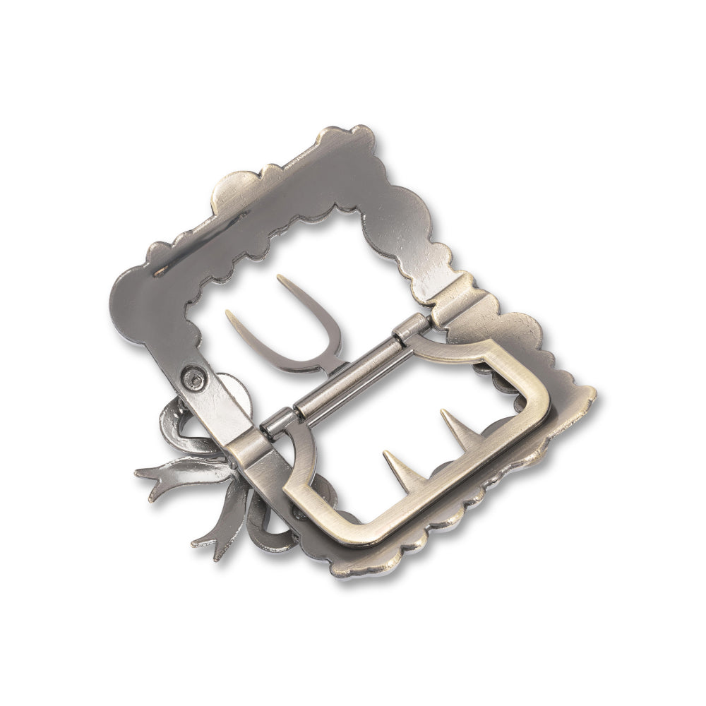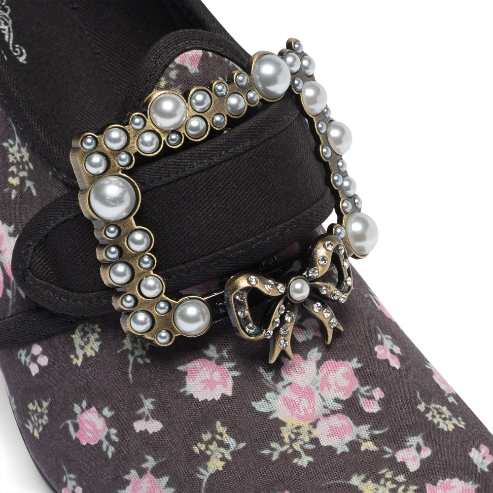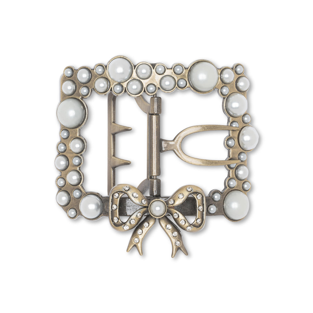 Pearl combines 18th century romance and fantastical maximalism to create a beautifully eye-catching, feminine shoe buckle, complete with an ornamental bow detail. These fully functional buckles are a fabulous way to add a touch of shimmer and sparkle to any pair of latchet shoes.
