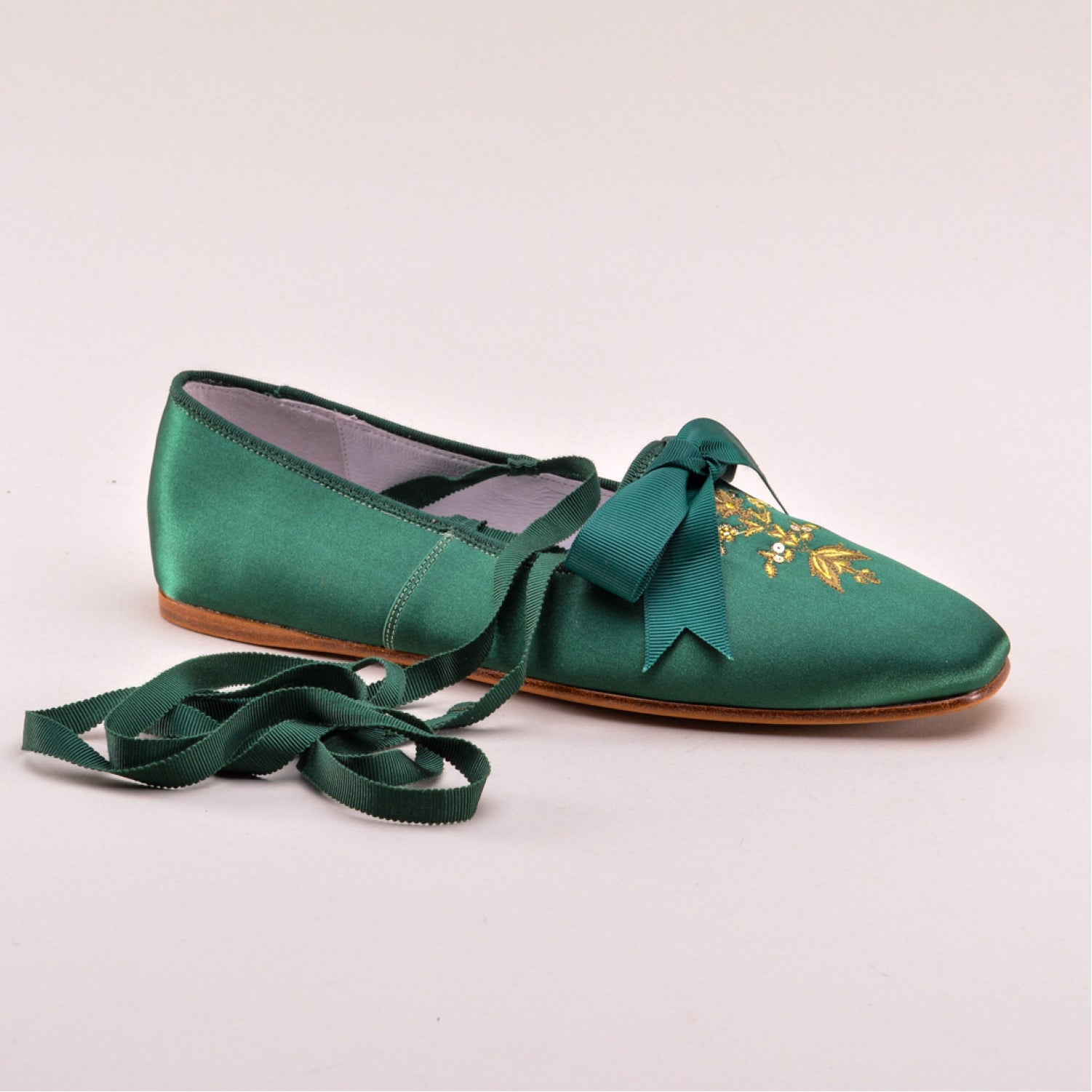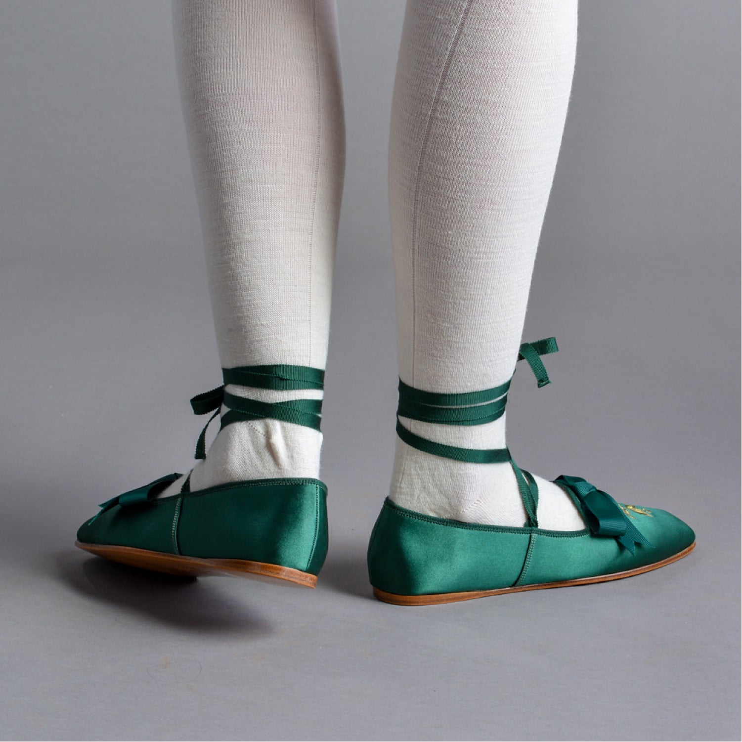 - Petersham binding, ankle ribbons, and bow